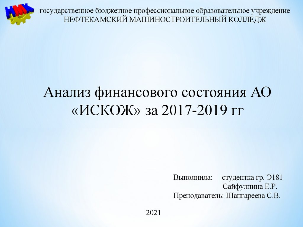 Анализ финансового состояния АО «ИСКОЖ» за 2017-2019 гг