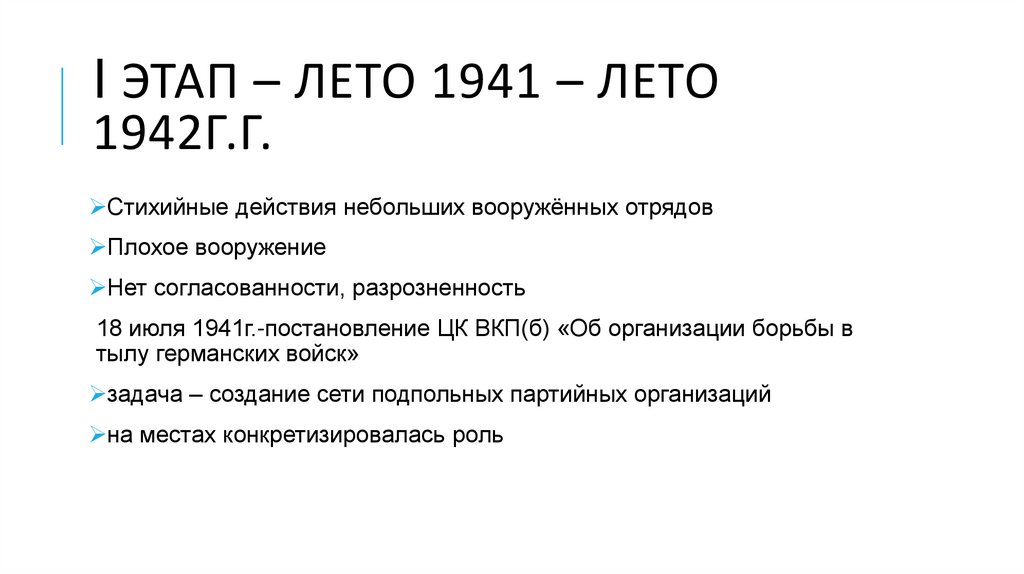 I ЭТАП – ЛЕТО 1941 – ЛЕТО1942Г.Г.