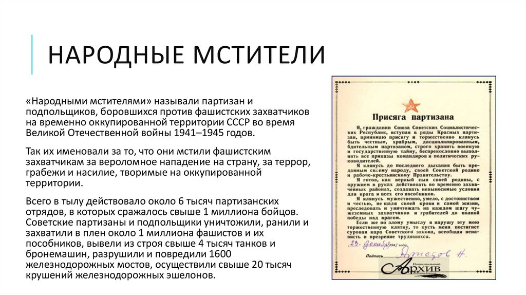 НАРОДНЫЕ МСТИТЕЛИ«Народными мстителями» называли партизан и