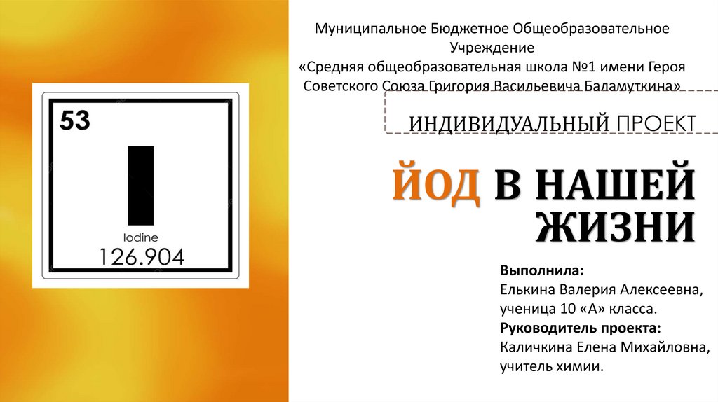 — I2. Атомная масса йода: 126,90447(3). Электронная