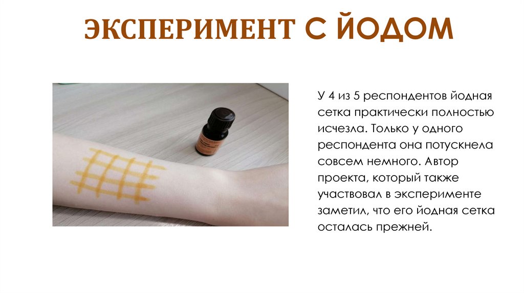ЭКСПЕРИМЕНТ С ЙОДОМУ 4 из 5 респондентов йодная