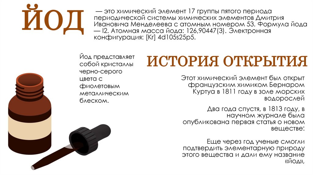 Ивановича Менделеева с атомным номером 53. Формула йода