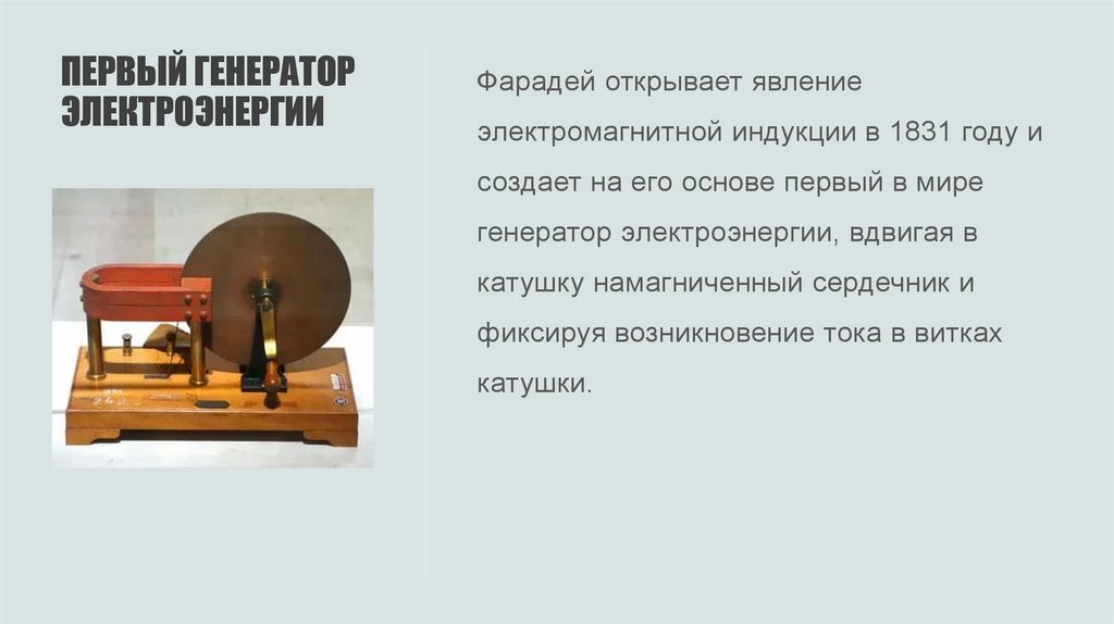 ПЕРВЫЙ ГЕНЕРАТОРЭЛЕКТРОЭНЕРГИИ