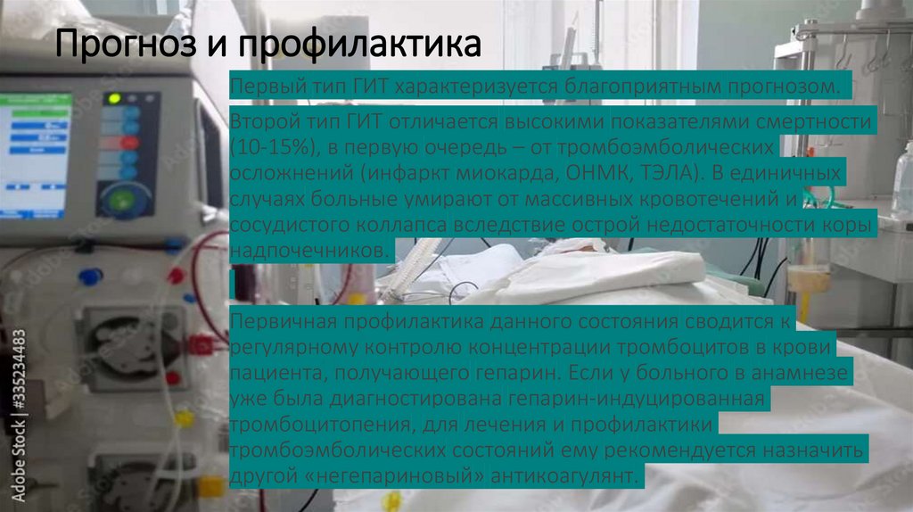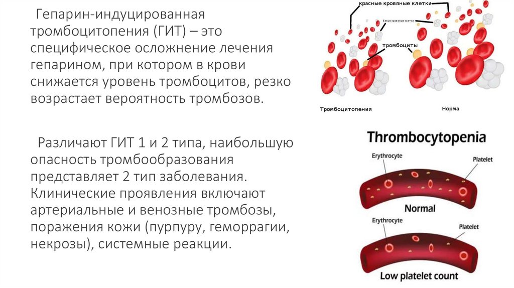 свиней. Во врачебной практике под термином гепарининдуцированная тромбоцитопения подразумевается 2 тип,