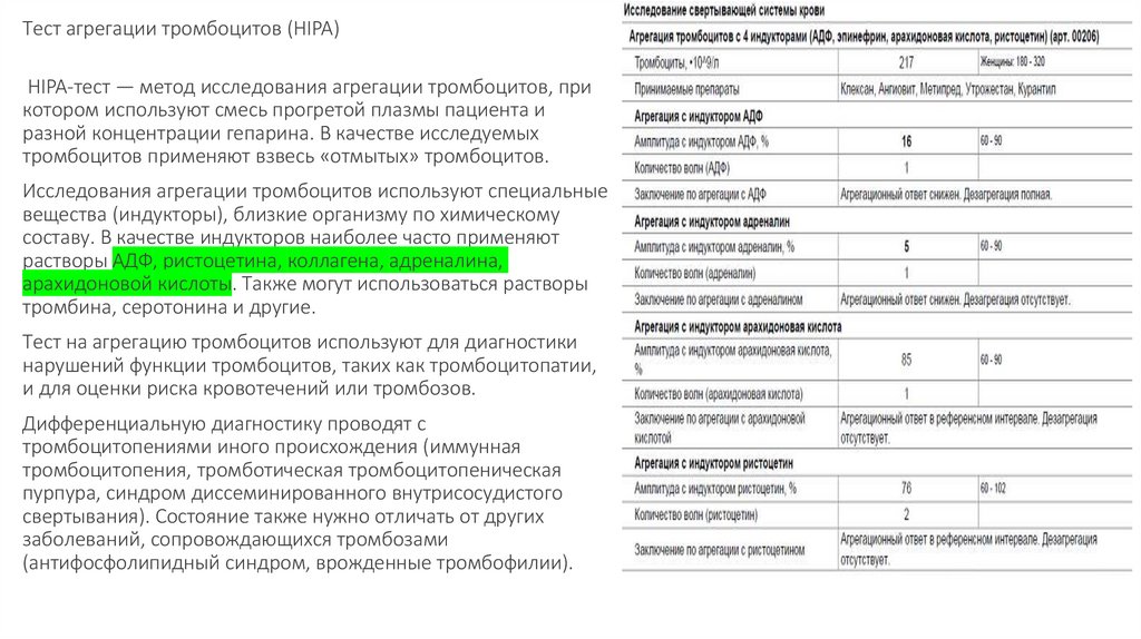 Тест агрегации тромбоцитов (HIPA)HIPA-тест — метод исследования агрегации тромбоцитов, при