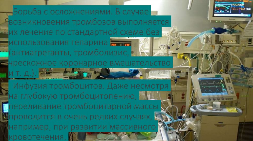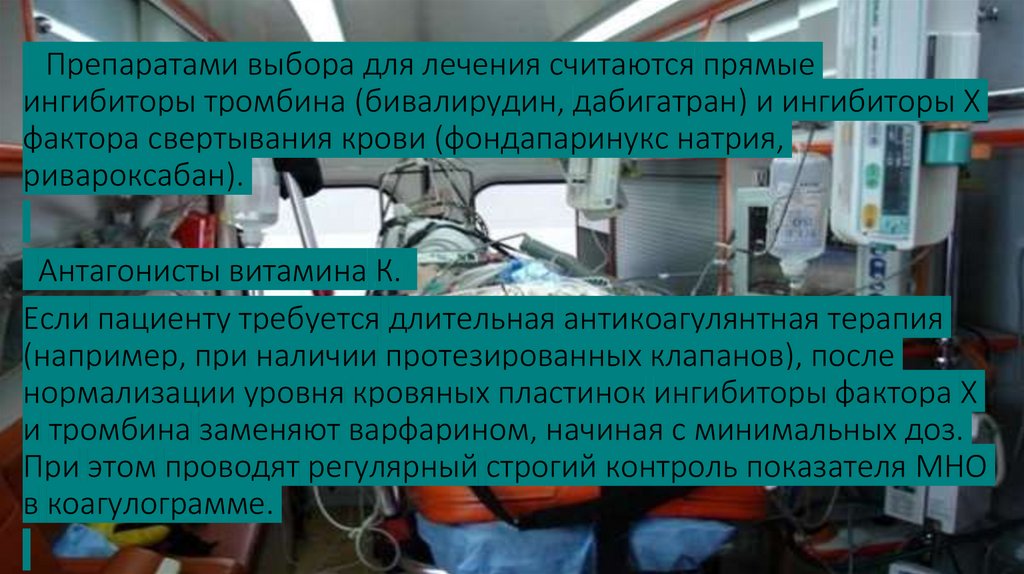 Препаратами выбора для лечения считаются прямыеингибиторы тромбина (бивалирудин, дабигатран) и ингибиторы X