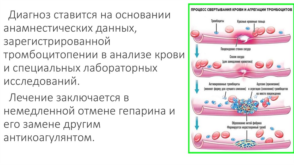 гепаринотерапии. Тромбоцитопения может сохраняться длительное время