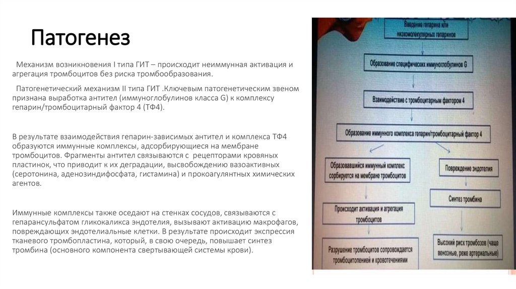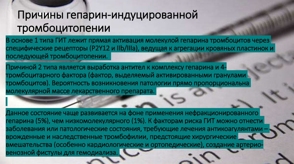 Причиной 2 типа является выработка антител к комплексу гепарина и 4тромбоцитарного фактора (фактор, выделяемый активированными гранулами
