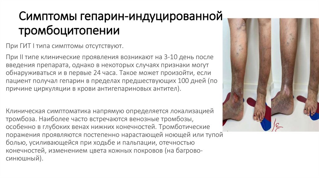 Симптомы гепарин-индуцированнойтромбоцитопении