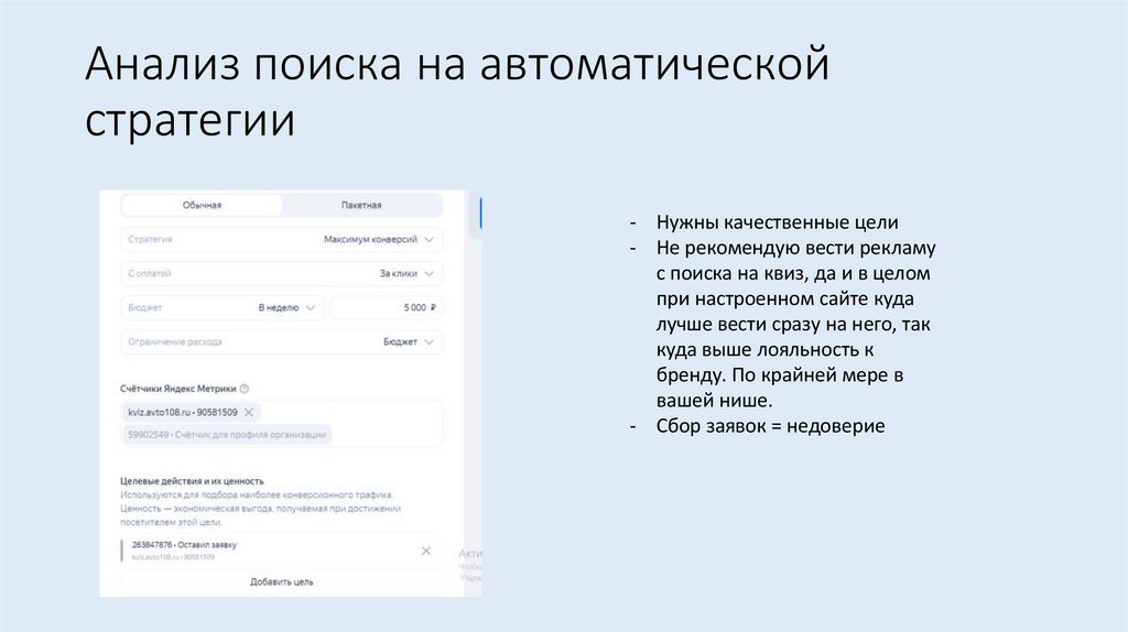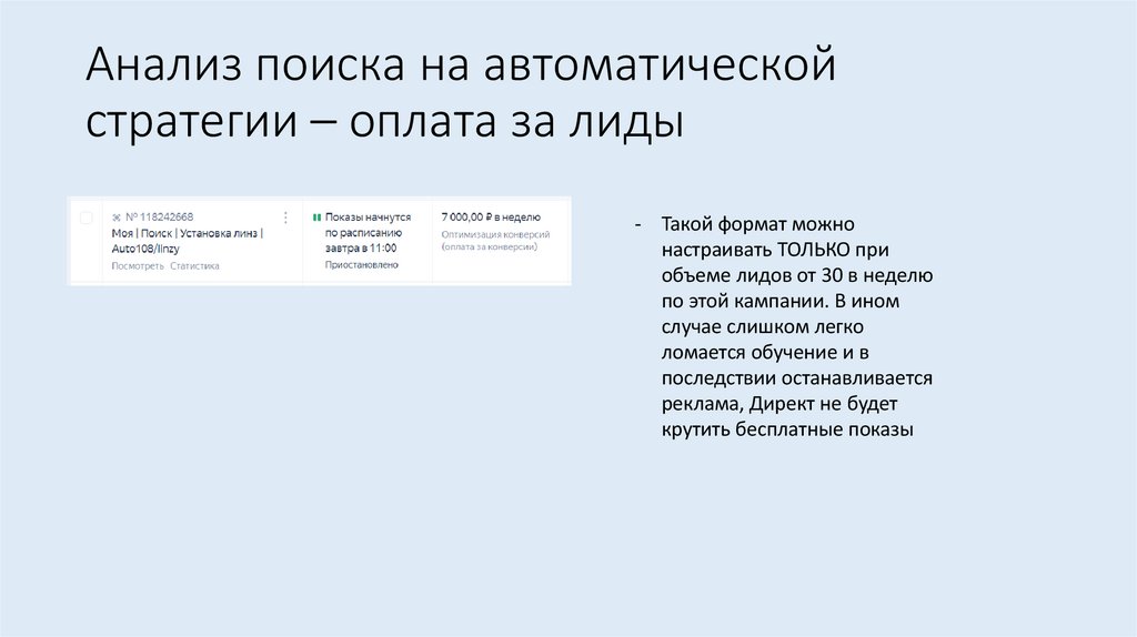 Анализ поиска на автоматическойстратегии – оплата за лиды