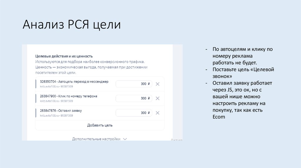 - Настроить цели на Ecom. То есть оплату заказа через корзину