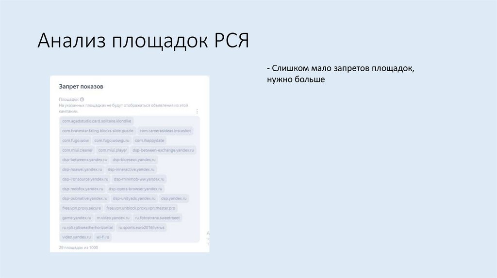 Анализ площадок РСЯ- Слишком мало запретов площадок,