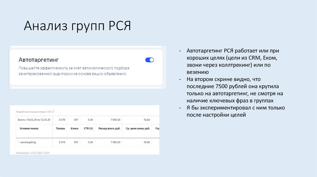 Анализ групп РСЯ- Автотаргетинг РСЯ работает или при