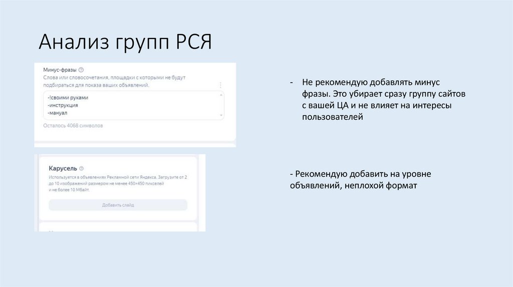 Анализ групп РСЯ- Не рекомендую добавлять минус