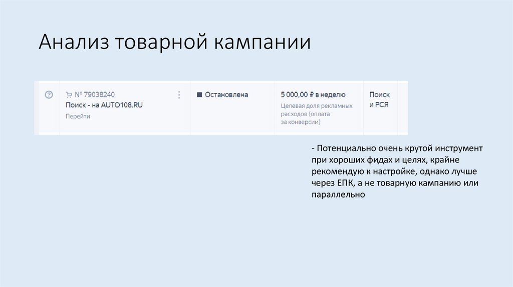 Анализ товарной кампании- Потенциально очень крутой инструмент