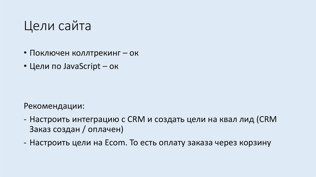 - Настроить интеграцию с CRM и создать цели на квал лид (CRM