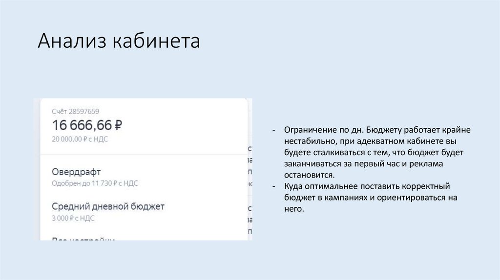 Анализ кабинета- Ограничение по дн. Бюджету работает крайне