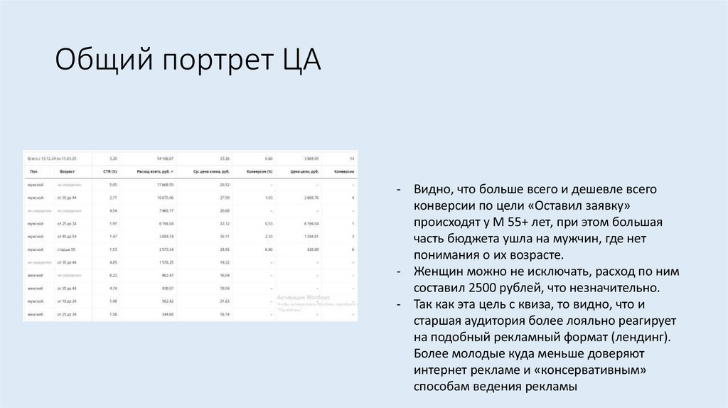 Общий портрет ЦА- Видно, что больше всего и дешевле всего