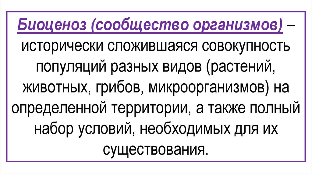 Биоценоз (сообщество организмов) –исторически сложившаяся совокупность