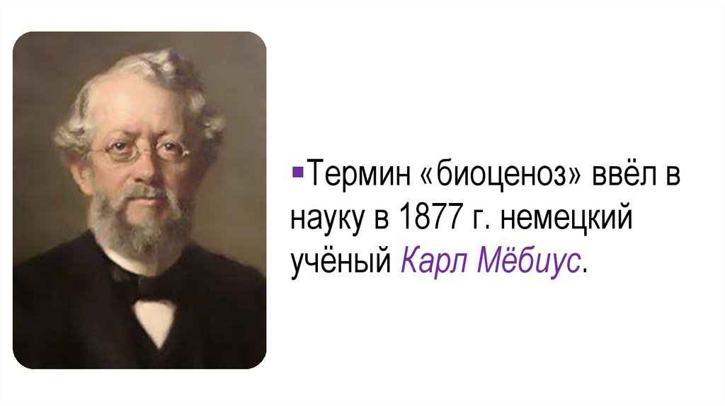 Термин «биоценоз» ввёл внауку в 1877 г. немецкий