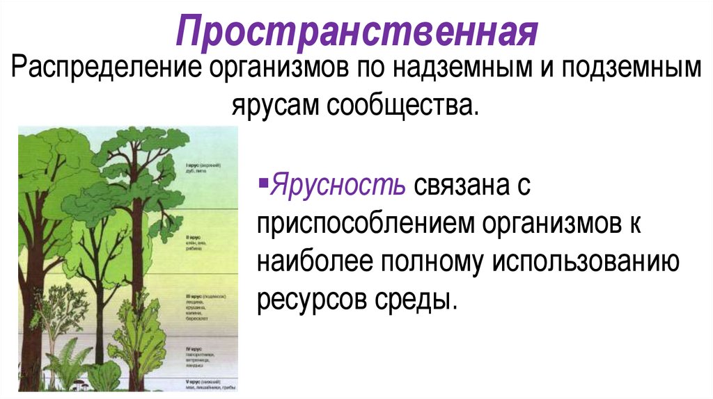Мозаичность – горизонтальноераспределение организмов в сообществе.