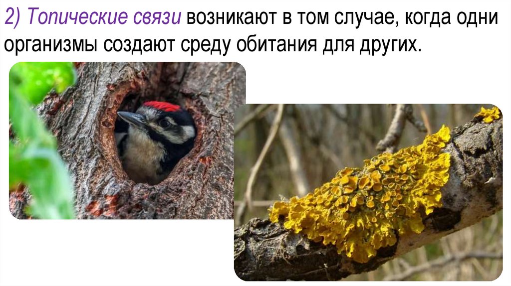 2) Топические связи возникают в том случае, когда одниорганизмы создают среду обитания для других.
