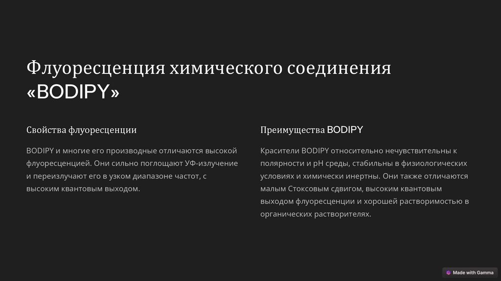 BODIPY и многие его производные отличаются высокой