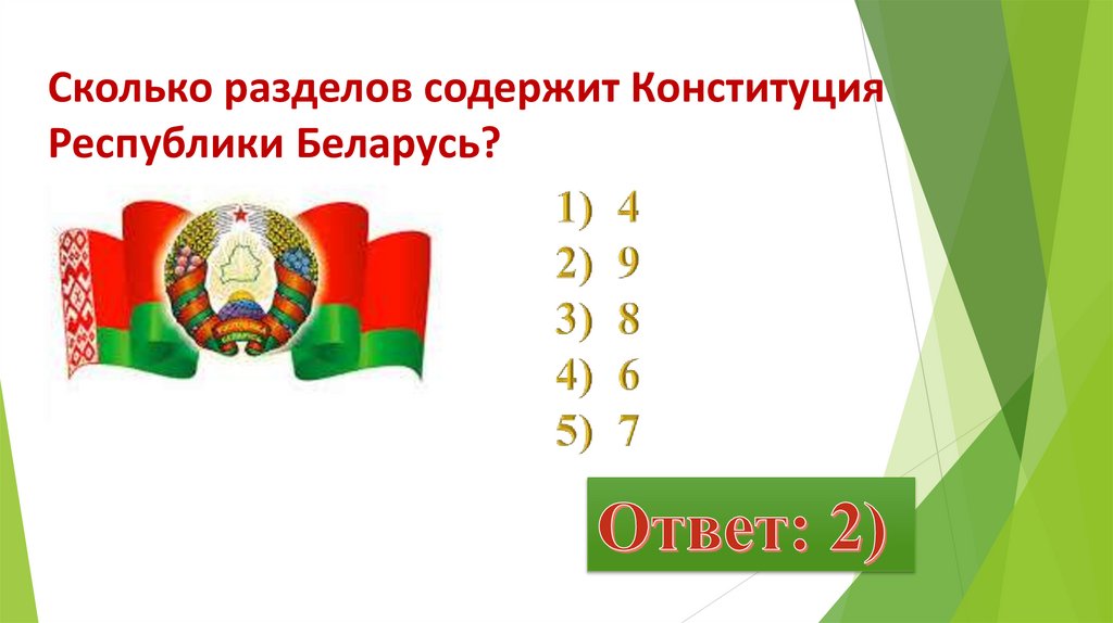 Сколько разделов содержит КонституцияРеспублики Беларусь?