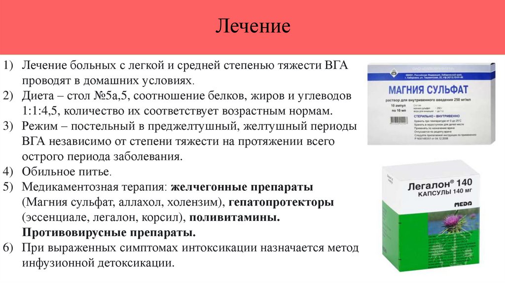 Лечение1) Лечение больных с легкой и средней степенью тяжести ВГА