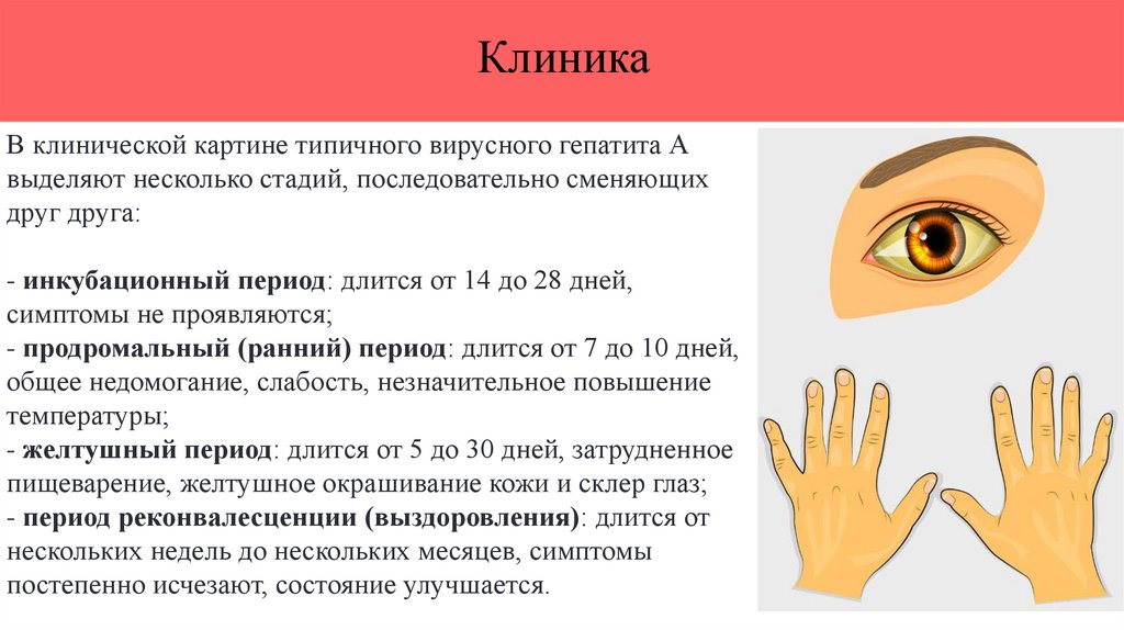 КлиникаВ клинической картине типичного вирусного гепатита А