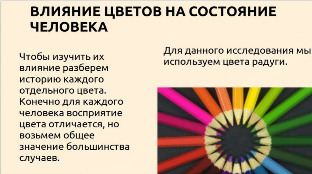 ВЛИЯНИЕ ЦВЕТА НА ЧЕЛОВЕКА