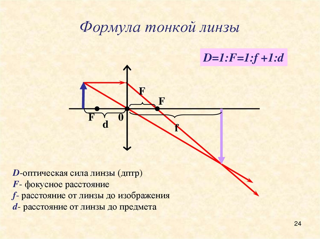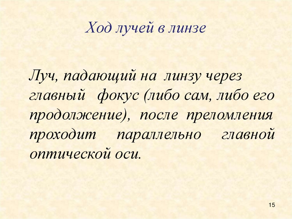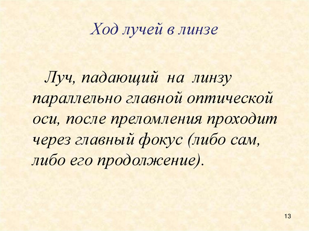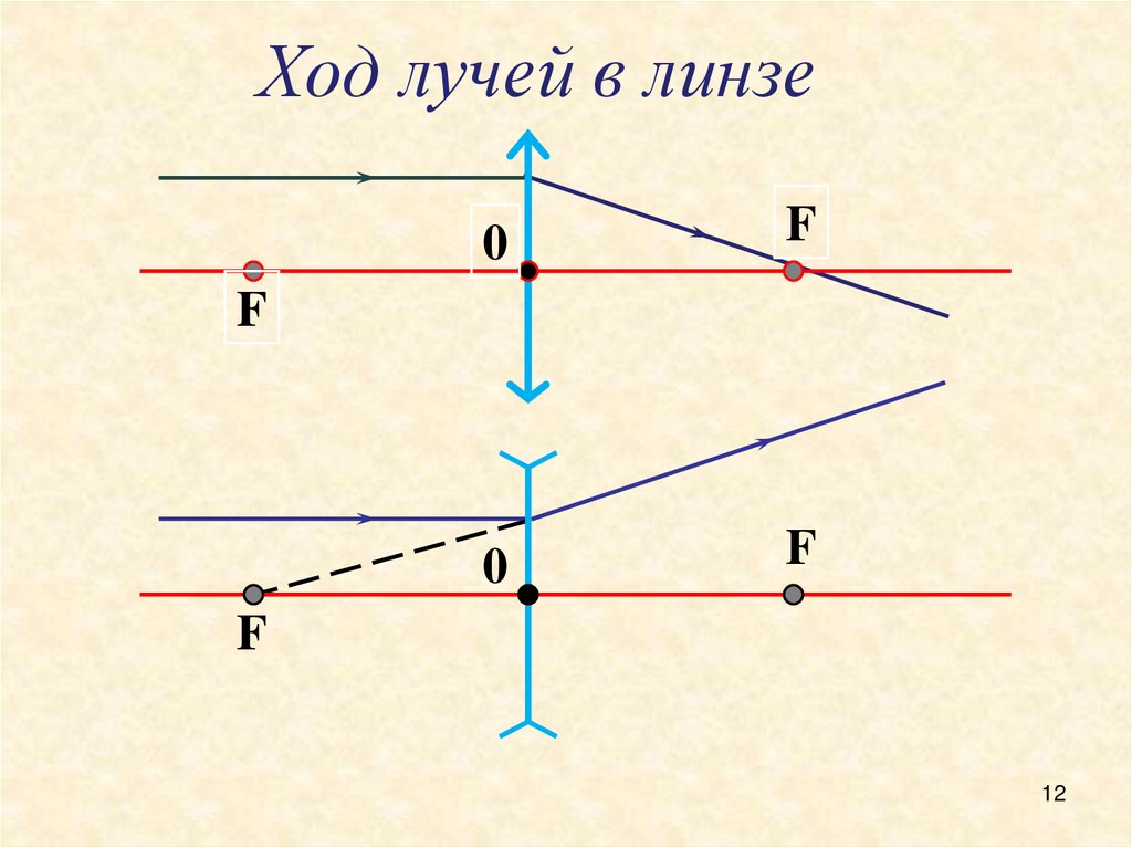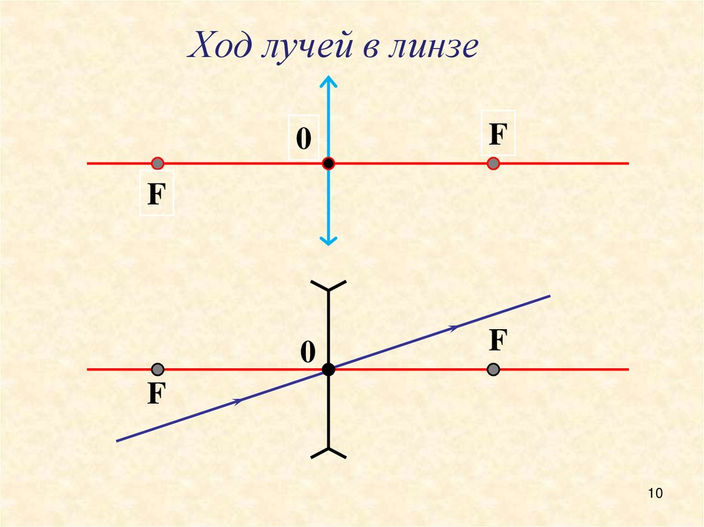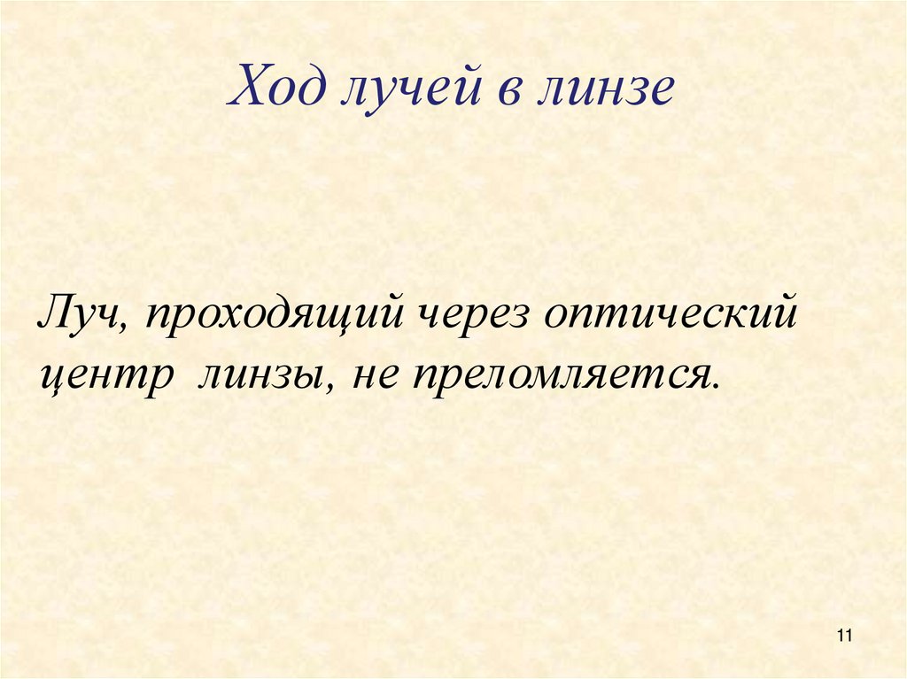 Луч, проходящий через оптическийцентр линзы, не преломляется.