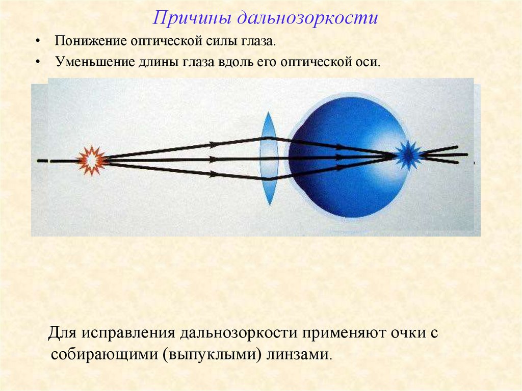 • Понижение оптической силы глаза.• Уменьшение длины глаза вдоль его оптической оси.