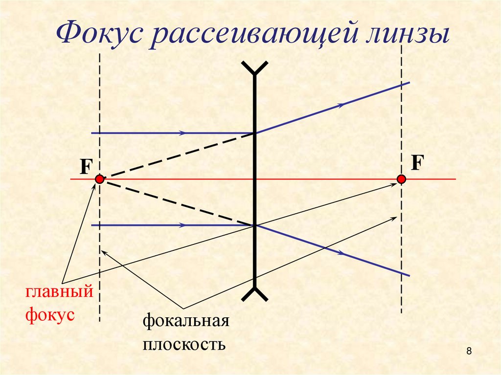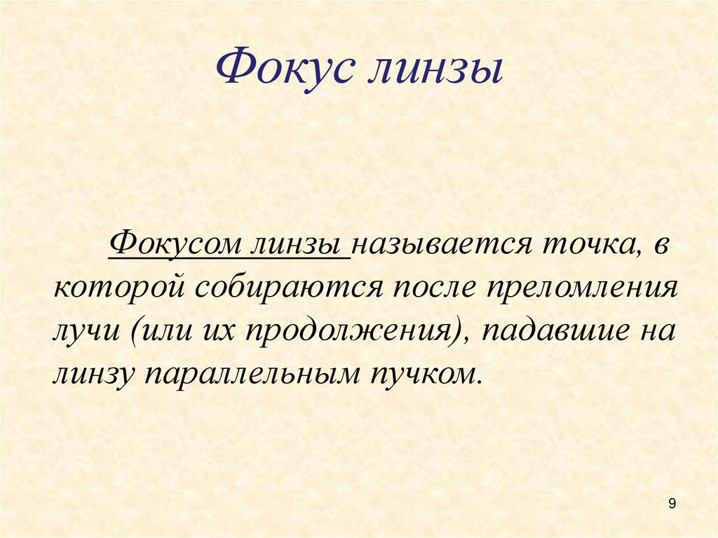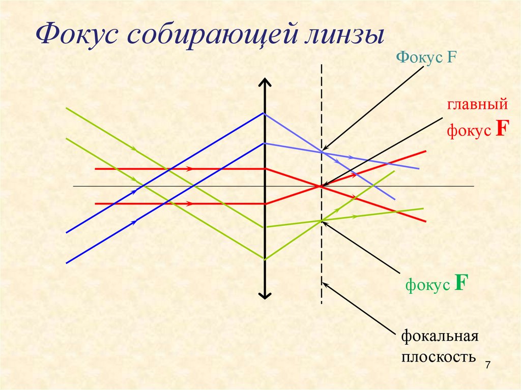 Фокусом линзы называется точка, вкоторой собираются после преломления