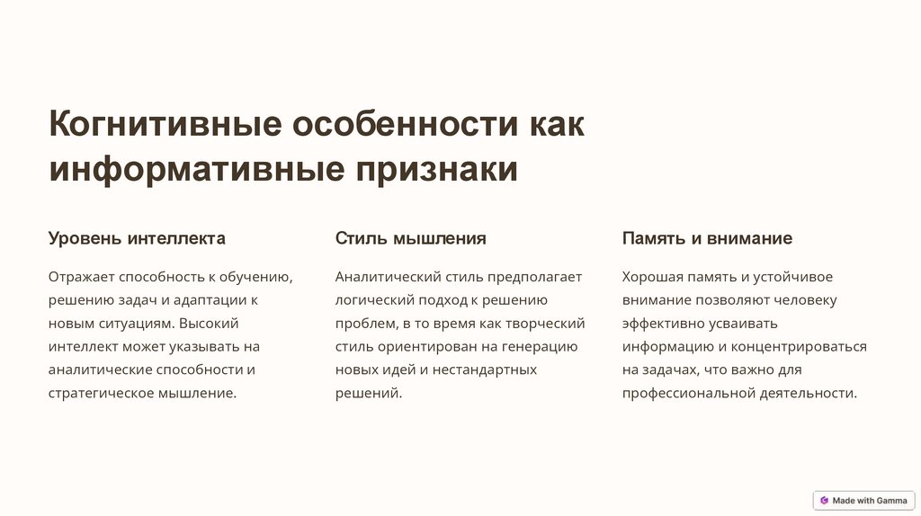 на когнитивных, мотивационных и эмоциональных особенностях, в