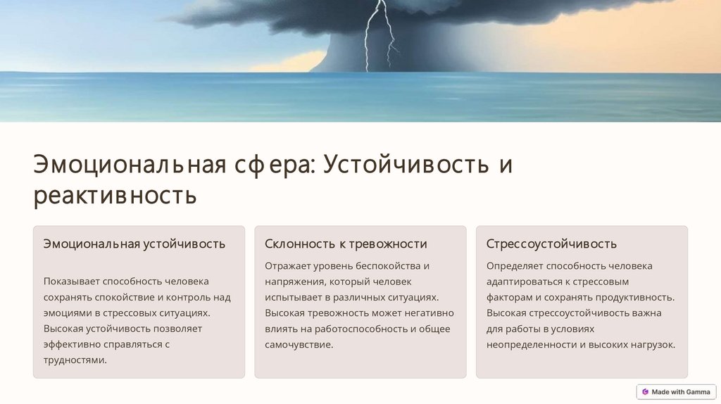 Эмоционал ь ная сф ера: Устойчивость иреактив ность