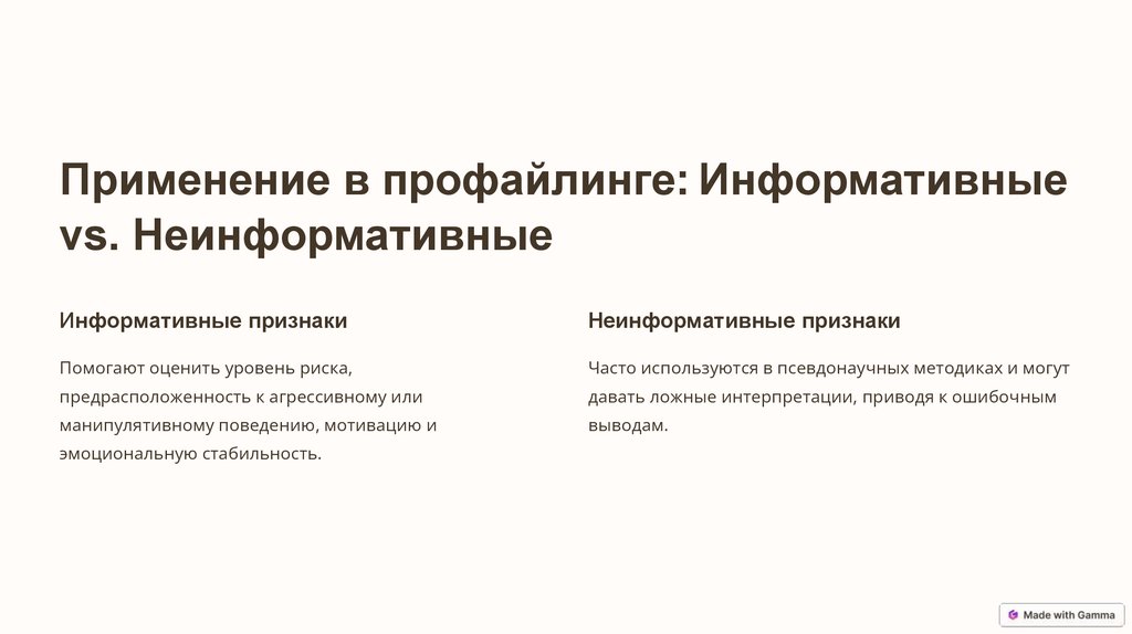 Применение в профайлинге: Информативныеvs. Неинформативные