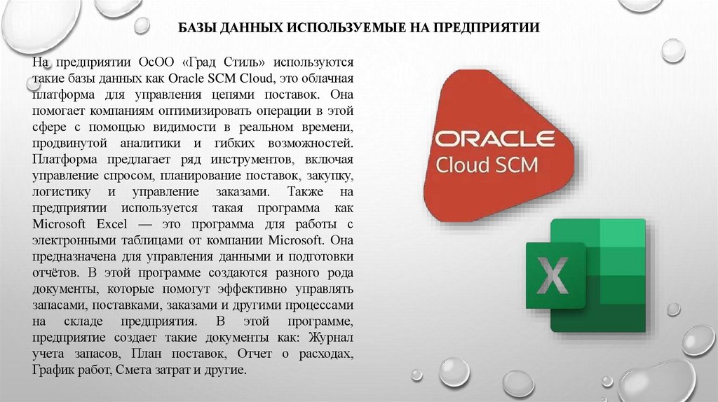 БАЗЫ ДАННЫХ ИСПОЛЬЗУЕМЫЕ НА ПРЕДПРИЯТИИНа предприятии ОсОО «Град Стиль» используются