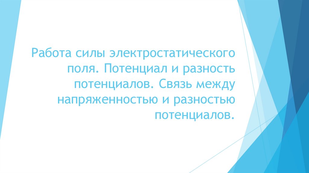 Работа силы электростатического поля. Потенциал и разность потенциалов. Связь между напряженностью и разностью потенциалов