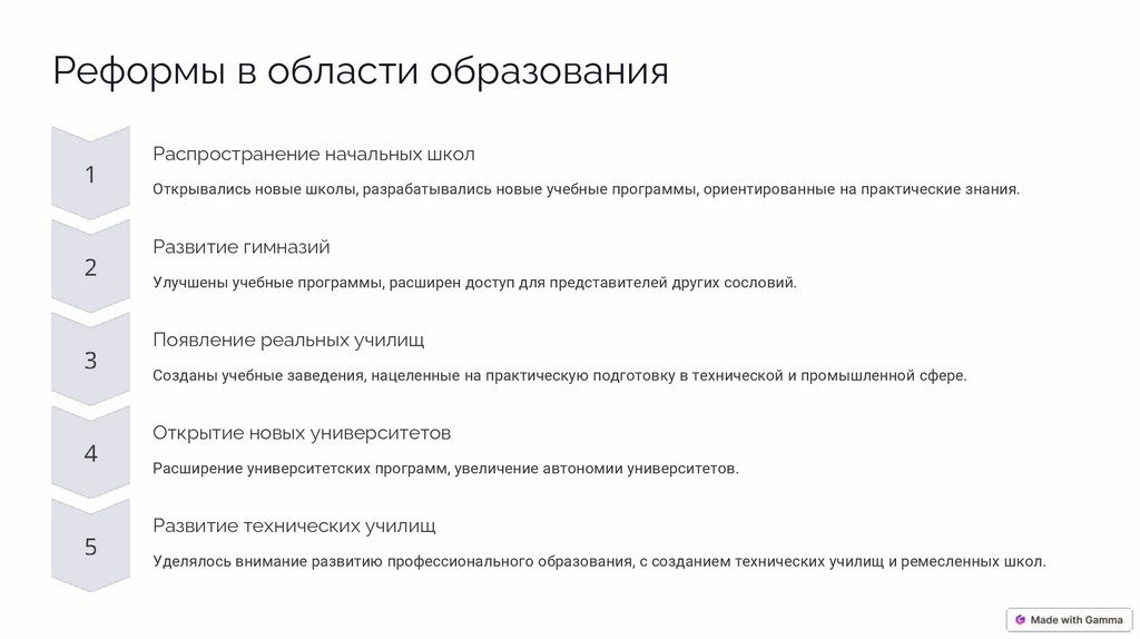 Улучшены учебные программы, расширен доступ для представителей других сословий.
