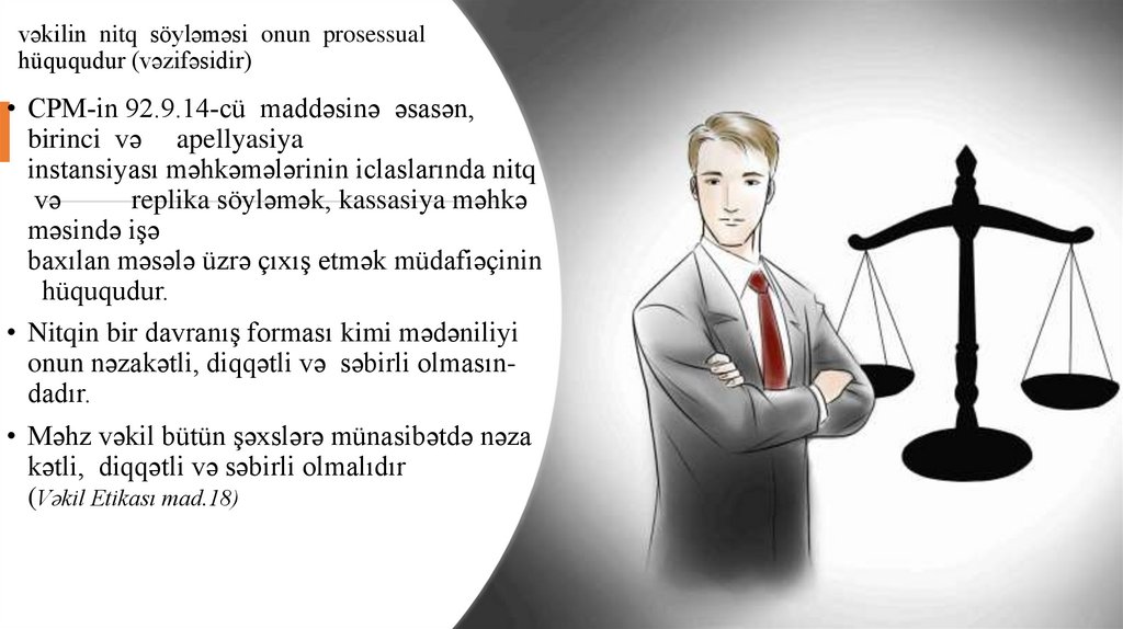 vəkilin nitq söyləməsi onun prosessualhüququdur (vəzifəsidir)