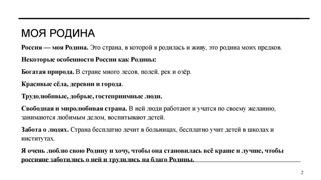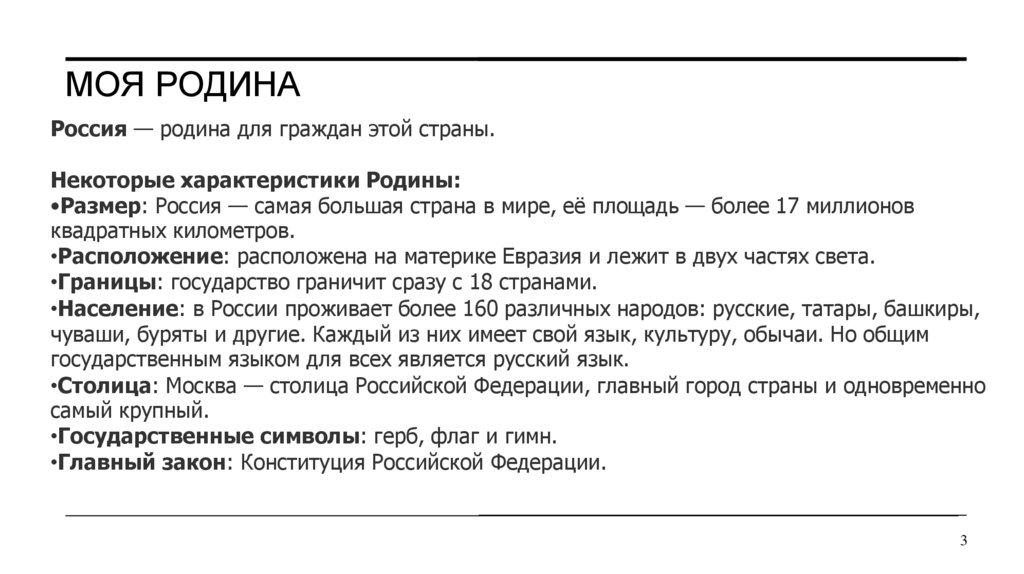 МОЯ РОДИНАРоссия — моя Родина. Это страна, в которой я родилась и живу, это родина моих предков.