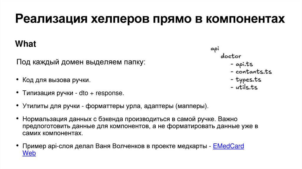 • Пример api-слоя делал Ваня Волченков в проекте медкарты - EMedCard