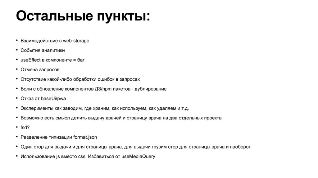 • Возможно есть смысл делить выдачу врачей и страницу врача на два отдельных проекта