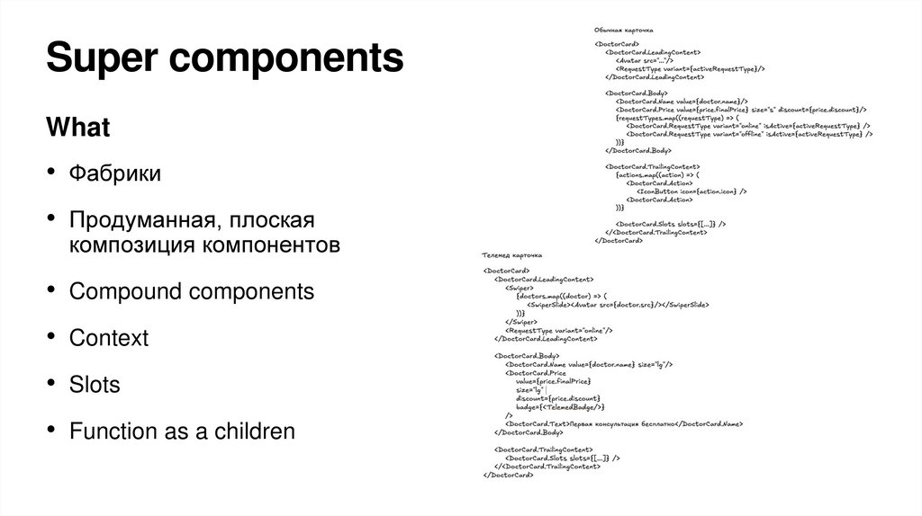 Super componentsЗачастую такие компоненты появляются в следствии подхода выше