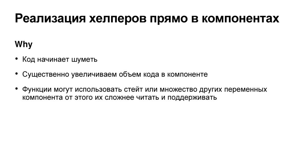 Реализация хелперов прямо в компонентахГеттеры, рендер-функции, нормализация данных