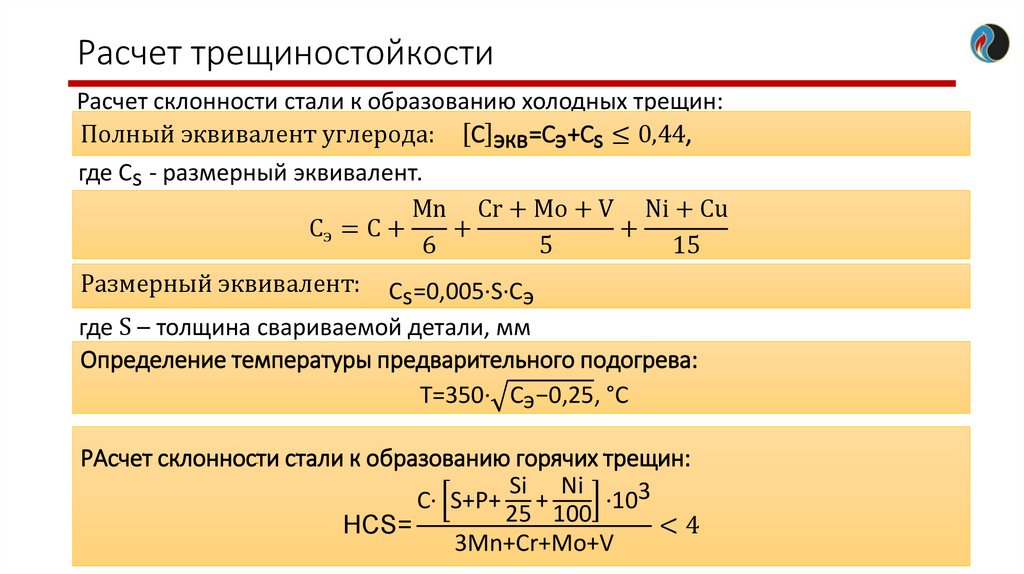 Расчет трещиностойкостиРасчет склонности стали к образованию холодных трещин: