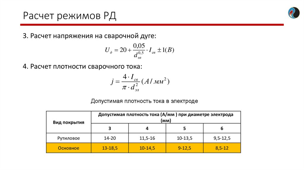 Расчет режимов РД3. Расчет напряжения на сварочной дуге: