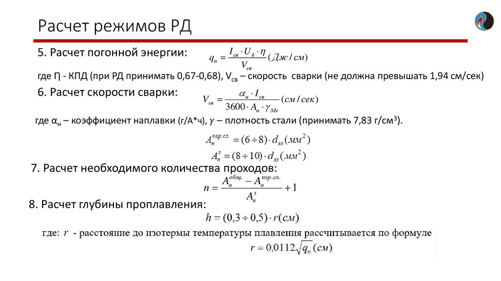 где Ƞ - КПД (при РД принимать 0,67-0,68), Vсв – скорость сварки (не должна превышать 1,94 см/сек)