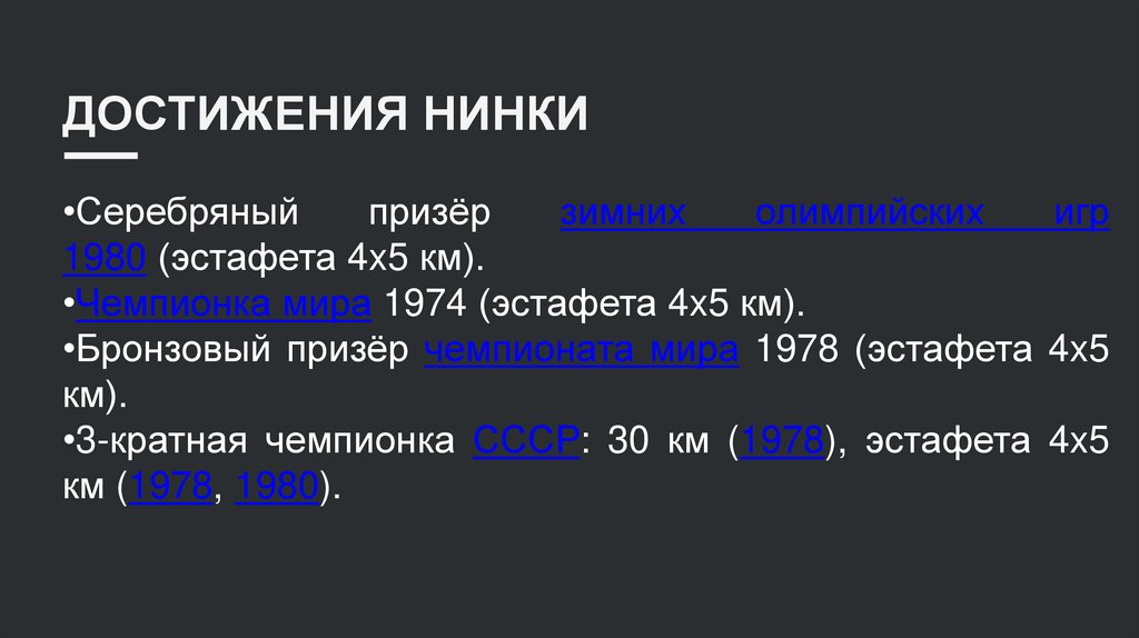 •3-кратная чемпионка СССР: 30 км (1978), эстафета 4x5